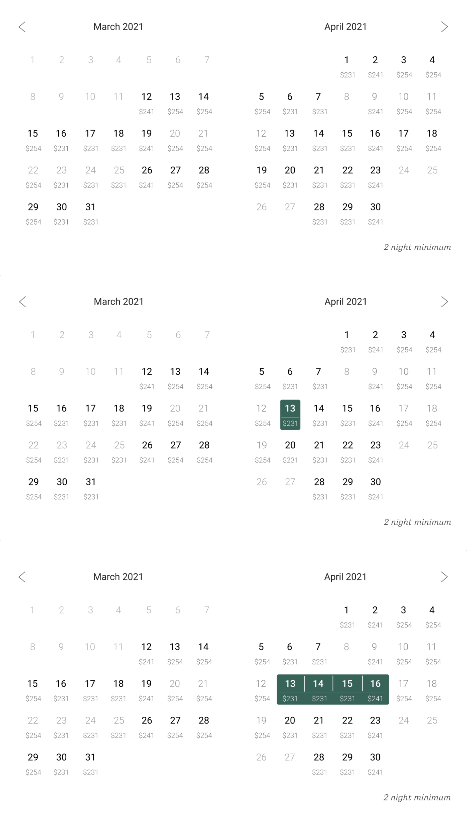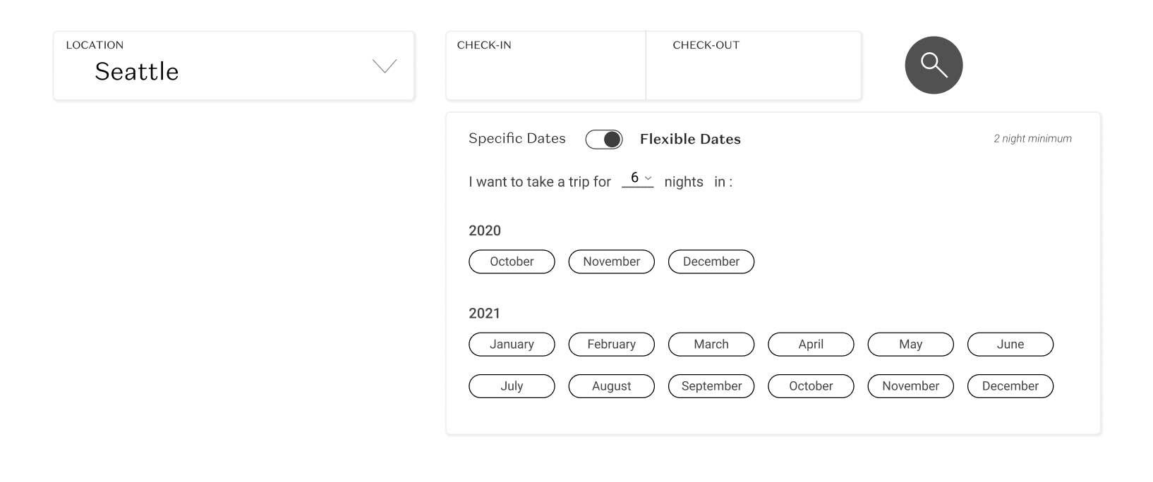 After doing a competitive analysis, I came up with the idea of ‘flexible dates’, where a user with a flexible timeline could select a month or multiple months in which they wanted to take a trip, and choose an approximate number of days for that trip. We would then present them with a number of available date ranges, thereby giving them flexible options, and ensuring they wouldn’t have to repeatedly try dates until they eventually gave up.